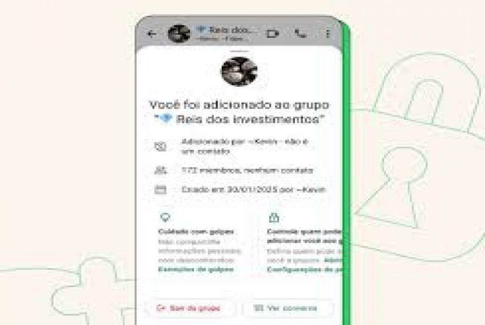 Se você desconfiar de algo, pode sair do grupo sem nem precisar ler a conversa. Por outro lado, caso você reconheça o grupo, basta clicar em "Ver conversa". As notificações ficam silenciadas até você indicar que deseja permanecer no grupo.