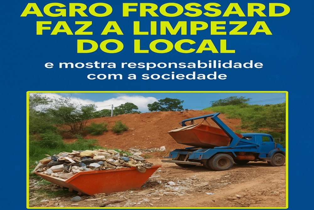 Sensibilizada com a situação e comprometida com a responsabilidade social e com a comunidade, a empresa Agro Frossard realizou de forma rápida a remoção completa do entulho, garantindo que o local fosse limpo e seguro.