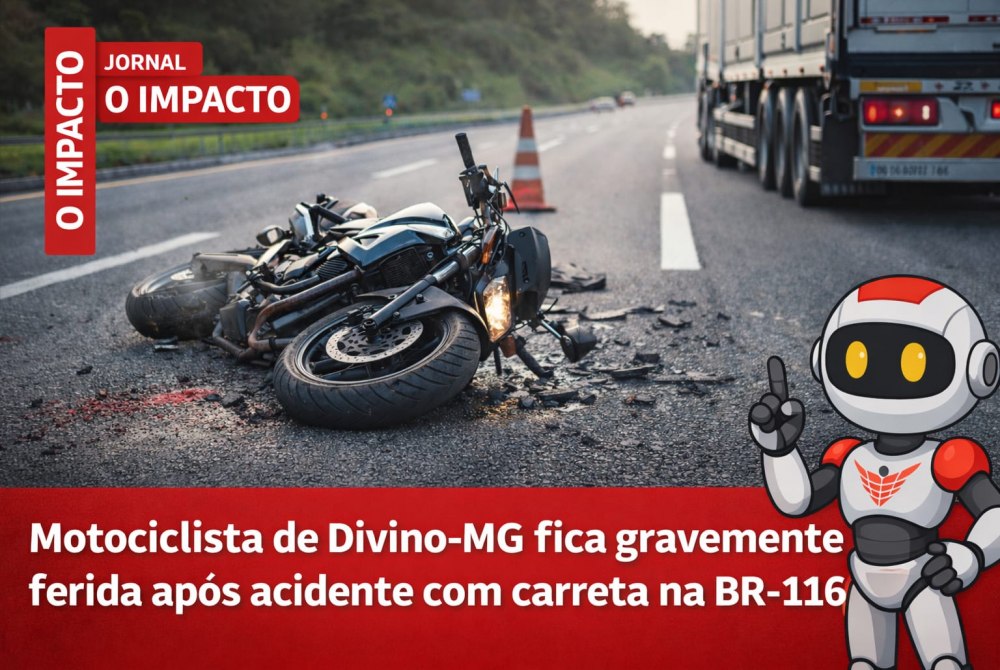 Uma motociclista de 49 anos, moradora de Divino-MG, ficou gravemente ferida após se envolver em um grave acidente na BR-116, no perímetro urbano de Fervedouro, na Zona da Mata mineira. A ocorrência foi registrada na terça-feira (30), na altura do km 650 da rodovia.