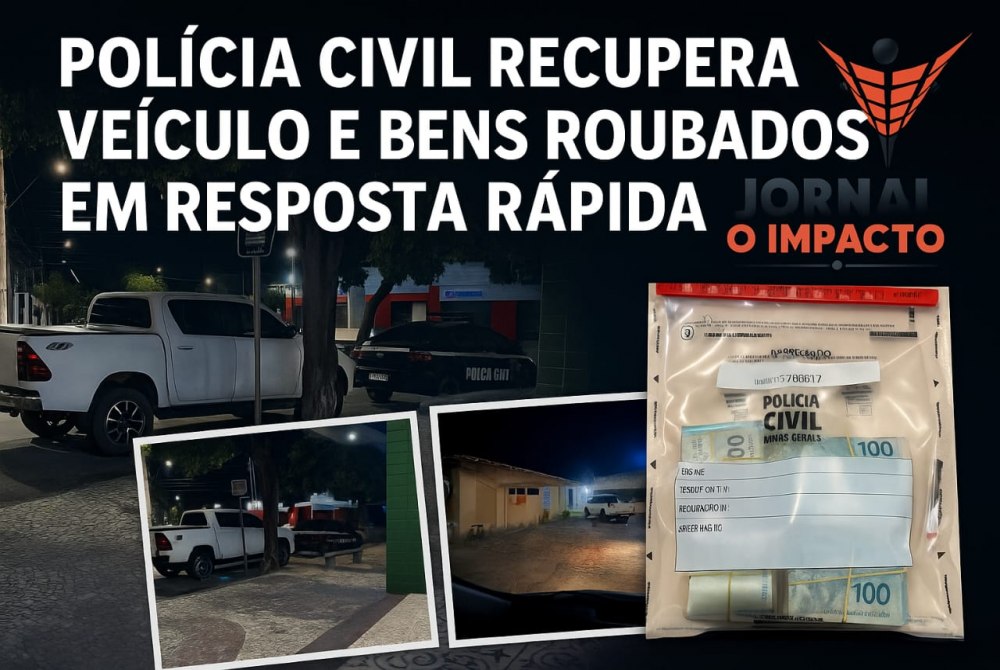 Carangola, 6 de dezembro de 2025 – A notícia sobre o roubo de uma caminhonete em Carangola, divulgada pelo Jornal O Impacto, teve grande repercussão na região. A Polícia Civil de Carangola, em uma operação conjunta, realizou uma ação bem-sucedida e deu resposta rápida à sociedade, recuperando o veículo, dinheiro em espécie e celulares roubados.