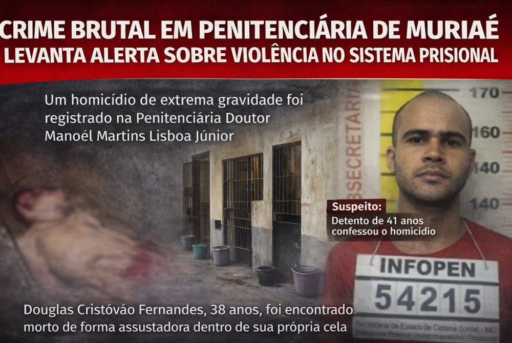 Um homicídio de extrema gravidade foi registrado na tarde desta segunda-feira (12) dentro da Penitenciária Doutor Manoel Martins Lisboa Júnior, em Muriaé, na Zona da Mata de Minas Gerais. Um detento de 38 anos, identificado como Douglas Cristóvão Fernandes, foi encontrado morto no interior da unidade prisional, em circunstâncias que chocaram pela violência empregada.